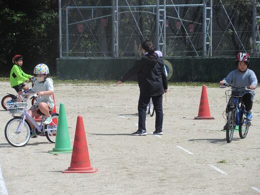 昨日の2時間目に1・5・6年生、3時間目に2・3・4年生の交通教室を行いました。荒尾市防災安全課より2名の方にお越しいただき、さらに見守り隊の方々のご協力もいただきました。1・2年生は横断歩道の渡り方、3年生以上は安全な自転車の乗り方を学びました。横断歩道では「手を挙げて、右・左・右、安全渡れ」が合い言葉、自転車に乗る前の点検の時は「ブタはしゃべる」が合い言葉です(ぜひ子どもたちに意味を尋ねてください)。最近自転車のマナーがよくないというお話が学校にも届いています。自分の命を守るため、学習したことを生かしていきましょう!