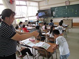 映像をとばしてます 投稿日時 : 2018/09/11 作成者1 1年生の算数の「ながさくらべ」で、机の縦の長さを自分の手がいくつ分かで調べているところです。その様子を他の児童に伝えるために、タブレットパソコンで撮影して、リアルタイムで映像を電子黒板にとばしています。おかげでどの子もやり方が分かりました。