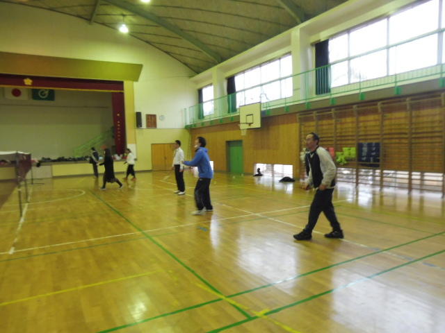 バドミントン部で、先生方とのお別れ試合をしました。勝ったり負けたり楽しいひとときでした。