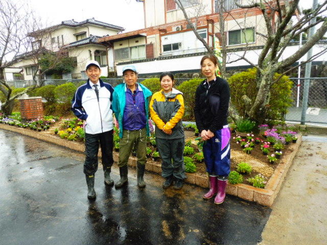 花壇の植え替え準備を、用務員の藤本先生と娘さんがやってくださいました。校長と教務も加わり、4人で下準備ができました。明日の植え替えが楽しみです。