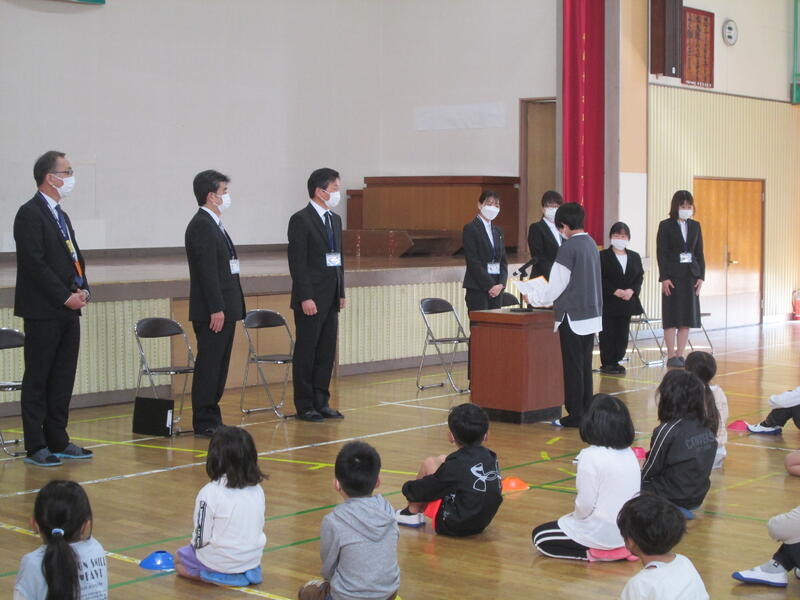 昨日、見守り隊顔合わせ式が行われました。桜山小では、たくさんの見守り隊や少年指導員の方々に見守りをしていただいています。いつも、見守っていただいているおかげで、子どもたちが安全に登校できています。今年もお世話になるみなさんに来校していただき、自己紹介をしていただきました。そして、6年生代表から感謝の気持ちを込めて、あいさつと手作りの名札をプレゼントしました。見守り隊のみなさんへのお礼は、事故にあわない事、あいさつすること、そして元気に学校に来ることです。令和4年度も、毎朝の見守りに感謝しながら元気に登校しましょう!