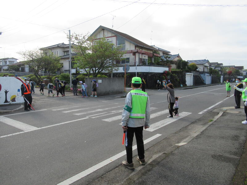本日は、初めて1年生も歩いての登校で、市役所からも見守りの応援がありました。