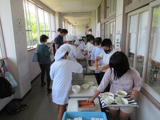 先月、給食センターが新しくなることによる食器等の運用デモンストレーションを2年生で行ったことをお伝えしましたが、昨日は5年生でも同様にデモンストレーションが行われました。2年生より力持ちの高学年では、どのように運び、配膳できるのかを給食センターや教育委員会が視察されました。高学年では、自分たちで配膳しますが、トラブルもなくスムーズに配膳でき、「さすが!」という感じでした。そして、いただきますをしましたが、これまた「さすが高学年!」という食べっぷりに、来られた方々もびっくりされ、「こんなに食べてくれると、作ったみなさんも喜ばれますね。」とおっしゃっていました。最後には、みんなでお礼まで言ってくれるという立派な態度でした。