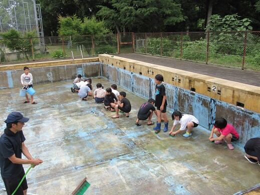 先週の金曜日の午後、5・6年生と職員でプール掃除を行いました。午前中マジャク釣りに行った5・6年生ですが、その疲れを見せることなくがんばってくれました。約1年ほったらかしのプールには、こけがいっぱいでしたが、デッキブラシ等でしっかりこすってくれたおかげで、見違えるようにきれいになりました。1年生~4年生は、プールそのものの掃除はしませんでしたが、プール周りの草取りなどをして高学年を応援してくれました。来週からきれいになったプールでの学習が始まります。子どもたちも楽しみにしていることと思います。水着等の準備よろしくお願いします。