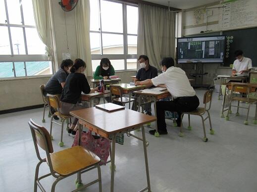 授業の後は、職員で授業についての研究会を行い、みんなで共通して実践していくことなどの確認を行いました。桜山小の子どもたちに確かな学力を身につけさせるために、真剣に意見を出し合う先生たちでした。