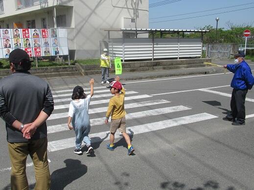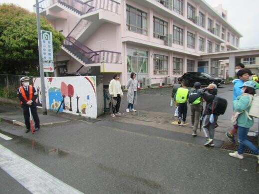 本校は、たくさんの地域のみなさま、保護者のみなさまに支えられて教育活動を進めています。いつも多くの方に朝の見守りをしていただき、入学式後からは1・2年生の下校も見守っていただいています。本日、1年生が初めて登校班で登校しましたが、いつもの見守り隊の方や地区指導員の方に加え、市役所の方にも見守っていただき安心して登校することができました。下校にもたくさんの保護者の方々に参加していただき本当にありがとうございます!