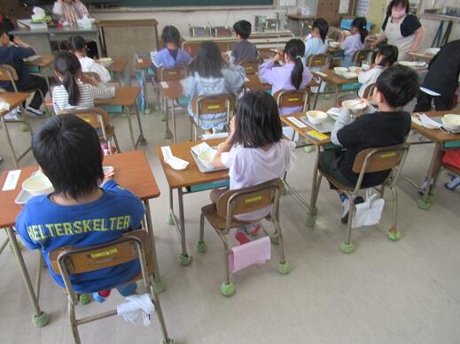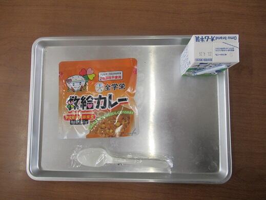 今日の給食は救急カレーでした。7年前の熊本地震の反省をもとに、何かあったときのために学校に配備されているものです。4月は防災を考える月間でもありますのでこのようなメニューになりました。救急カレーだけでは少ないということで牛乳もつけていただいていました。中にはおいしいと言っておかわりする子どももいました。