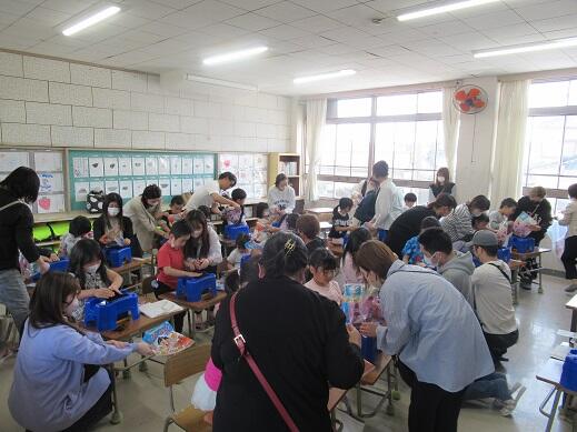 1年生は生活科。おうちの方と一緒にあさがおの種を植えました。これからお世話をがんばってください!
