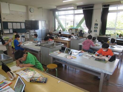 2年生から3年生になり、新しく始まることがたくさんあります。そのひとつが理科の授業です。2年生までは、全ての授業を担任の先生がしていましたが、3年生になり理科は専科の古閑先生から教えてもらいます。昨日、3年生の理科の授業にお邪魔しました。「しぜんのかんさつ」という学習で、前回校内で見つけた春の生き物をタブレットで撮影しており、それをシートにまとめていました。写真を見て絵に表し、色や大きさなど気づきを書き込んでいました。観察の基本をしっかり学んでいた3年生です。これから楽しい実験も待っています。楽しく理科の学習に取り組んでいきましょう!