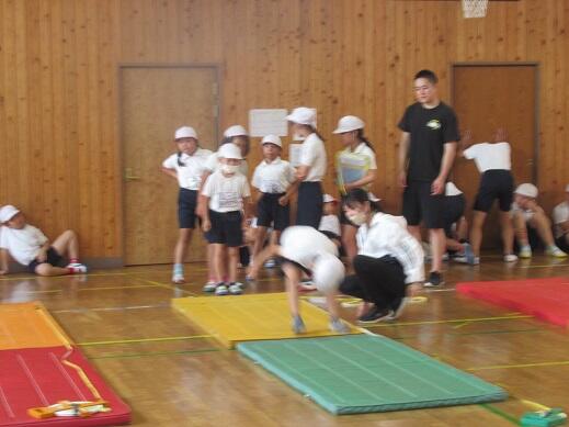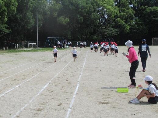 火曜日に予定していた体力テストですが、雨のために1日延期して昨日実施しました。前日に準備する時間がなかったため、朝から先生方がライン引き等の準備をしてくださって無事に実施できました。昨日は2時間で「50m走」「ボール投げ」「立ち幅跳び」「反復横跳び」「上体起こし」の5種目を、1年6年・2年5年・3年4年でペア学年になり測定しました。みんな一生懸命がんばることができました。また、ボランティアの方々に測定のお手伝いをしていただき(ALTのデレク先生も)無事に実施できましたこと感謝いたします。ありがとうございました。