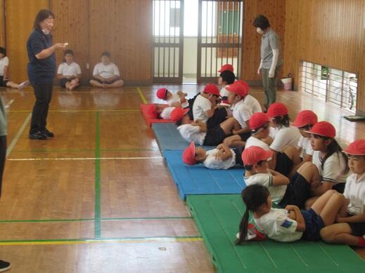 1年生の教室から楽しそうな音楽が聴こえてきたので覗いてみると…。かたつむりの歌に合わせてタンバリンやすず、カスタネットなどでリズム打ちをして楽しんでいました。入学して約3カ月、いろんな勉強をして成長している1年生です。上手にリズム打ちを楽しんでいました♪