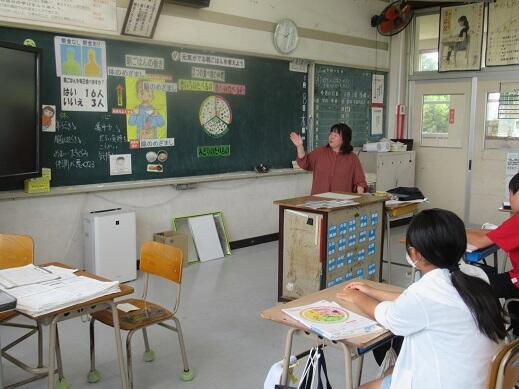 6年生の家庭科の授業に、栄養教諭の畑田先生がゲストティーチャーとして入られました。栄養教諭は荒尾市13の小中学校のうち、3校のみに配置されています。ありがたいことに桜山小に畑田先生がおられるので、栄養指導も気軽に入っていただくことができるのです。今回は、朝食1食分の栄養についての学習でした。畑田先生からの話を受け、6年生の子どもたちは実際に栄養バランスを考えながら朝食メニューを考えました。そして、今後調理実習へとつながっていきます。この学習が、日頃の朝食摂取につながっていくといいですね(栄養バランスを考えない朝食摂取をしている者が言うのもなんですが・・・)。