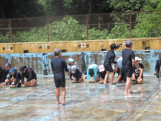 金曜日の5~6時間目に、4年生以上でプール掃除を行いました。だいぶ古くなったプールです。毎年、子どもたちが一生懸命がんばってくれますが、なかなかきれいにできません。昨年まで5年生以上で行っていましたが、人数も減ってきているため、今年は4年生にも加勢してもらい、みんなでがんばりました。2時間で何とかきれいになり、来週のプール開きを待つばかりとなりました。夏休みに入るまでの短い期間のプールでの学習となりますが、高学年のみんなに感謝しながら大事に使いましょう!