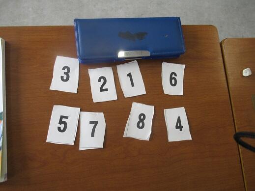 しばらくすると、「できた!」という子どもの声がして見てみると、確かに答えが9000になるように並べてありました。