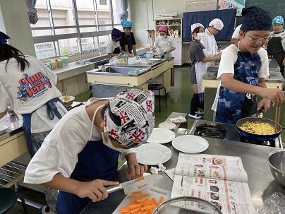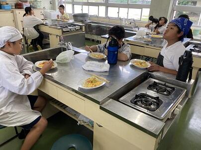 火曜日に6年生が調理実習に挑戦しました。野菜炒めとスクランブルエッグを作ることを通して「いためる」調理方法を学びました。グループで協力して、おいしい料理が出来上がったようです。おうちでもぜひ挑戦してください!