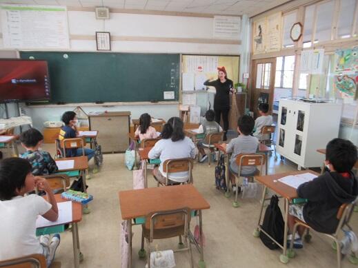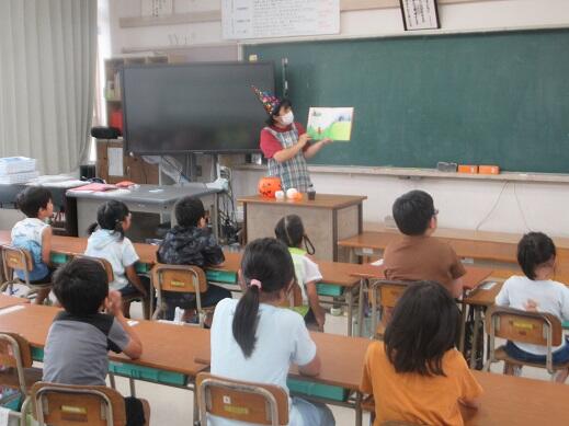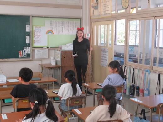 水曜日のフローレンス先生は、ハロウィンコスチュームでの登場でした。3年生以上はハロウィンにちなんだ授業がありましたが、1・2年生は授業がありませんでしたので、せっかくなので4時間目に1・2年生の教室にもお披露目に行ってもらいました。昨年は、デレク先生が千と千尋の神隠しに出てくるハクでしたが、今年のフローレンス先生は、魔女の宅急便のキキでした。子ども達もすぐに気づいたようで、大喜びでした!