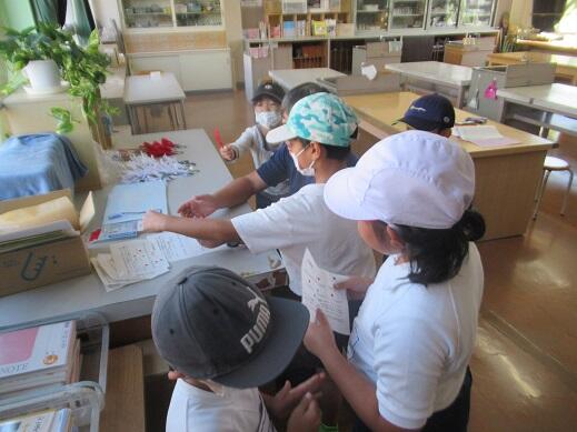 昨日のお昼休みに環境飼育委員会のみなさんが、スタンプラリーを開催してくれました。お昼の放送で紹介があり、昼休みになるとたくさんの子ども達が理科室にスタンプラリーの用紙をもらいに行き、元気に外にとびだしていきました。それぞれのチェックポイントでは、環境飼育委員会の子ども達が問題を出し、用紙にシールを貼ってくれました。全部のチェックポイントを回ったら理科室に行き、緒方先生からプレゼントをもらっていました。とても楽しい企画をしてくれた環境美化委員会のみなさん、ありがとうございました!