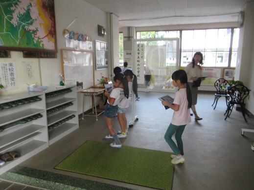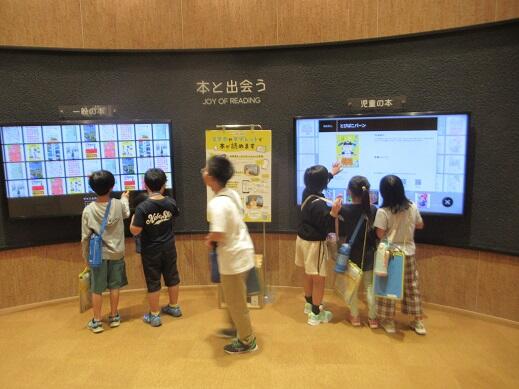 今日は3年生が楽しみにしていた市立図書館とシティモールの見学です。2時間目から、市のスクールバスを活用して見学に出発しました。しばらくして様子を見に行ってみると、広い図書館に興奮気味の様子でした。特にデジタルライブラリーのコーナーでは、説明をしてくださる図書館の方が、子ども達の圧に後ずさりされるほどでした。いざ触っていいよと言われると、一斉に画面の前に行きみんなで楽しんでいました。このあとのシティーモール見学では、バックヤードまで見せていただけるそうです。子ども達のお土産話を楽しみにしたいと思います。