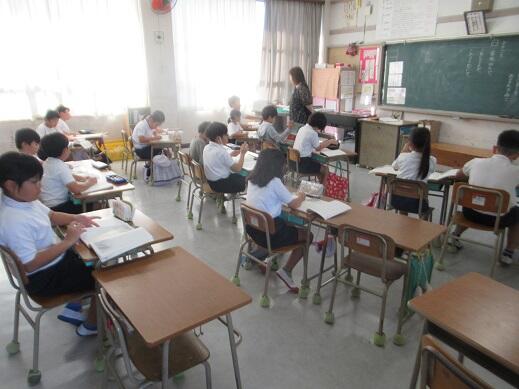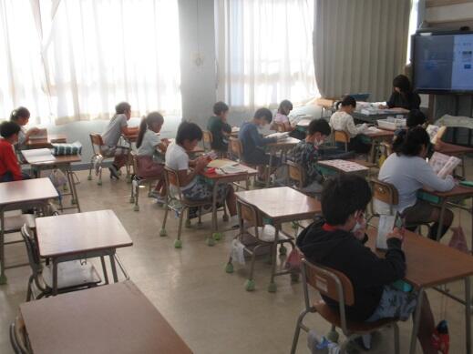 水曜日に4年生で道徳の授業がありました。担任の小栁先生が初任者ですので、初任者研修としての研究授業です。「遠足の朝」という題材で、勇気を出して行動することについて考えました。4年生の子ども達は一生懸命考え、お互いに意見交換してがんばった1時間でした。今度、再び校内研修で道徳の研究授業が予定されています。しっかり考え、心豊かに成長してくれそうと期待が持てる4年生でした。