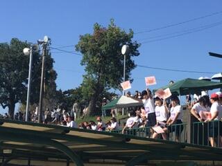 今日は6年生が親睦陸上大会に参加しています。朝からバスで陸上競技場へ行き、開会式が行われました。開会式では本校児童が代表で誓いの言葉を言いました。緊張しながらも頑張りました。現在男女100mを終え、それぞれの競技が始まるところです。