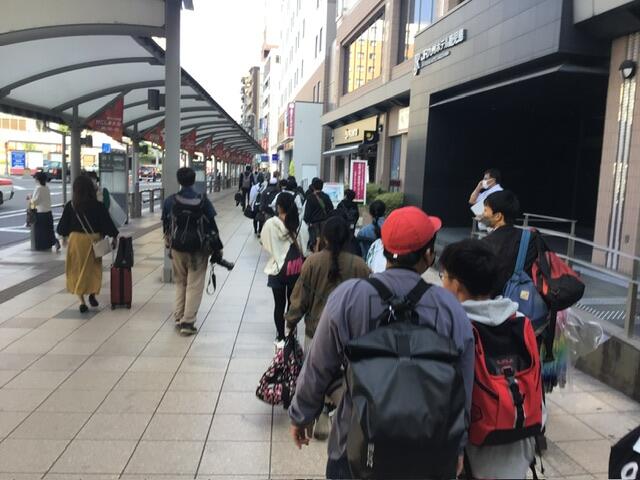 新幹線で鹿児島中央駅に到着しました。初めて新幹線に乗ったという子どももいたようです。バスに乗り換えて知覧へ向かいます。
