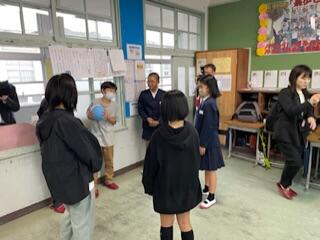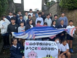 平和学習のあとタブレットの不具合があり、投稿が遅れました。平和学習のあと、枕崎市立桜山小学校にお邪魔し、交流しました。到着すると、手を振って大歓迎していただきました。自己紹介ゲームのあと、鰹節削り体験もさせていただき、最後宝探しゲームをしていただきました。素敵な交流を計画していただいた枕崎市立桜山小学校のみなさんに感謝です!