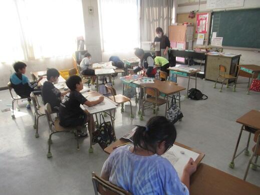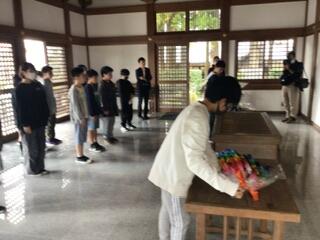 昼食後に平和学習を行いました。最初に平和集会をし、講和のあと資料館の見学を行いました。戦争の悲惨さや平和の尊さを感じてくれたことと思います。しかし、見学中に突然の雨となり、雷雨の中を枕崎市立桜山小学校へ向かいました。