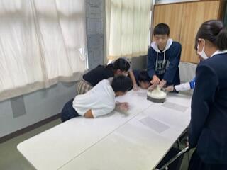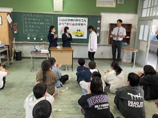 平和学習のあとタブレットの不具合があり、投稿が遅れました。平和学習のあと、枕崎市立桜山小学校にお邪魔し、交流しました。到着すると、手を振って大歓迎していただきました。自己紹介ゲームのあと、鰹節削り体験もさせていただき、最後宝探しゲームをしていただきました。素敵な交流を計画していただいた枕崎市立桜山小学校のみなさんに感謝です!
