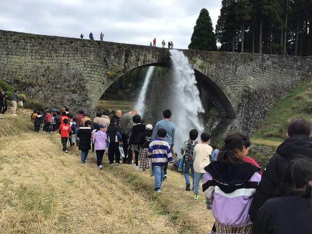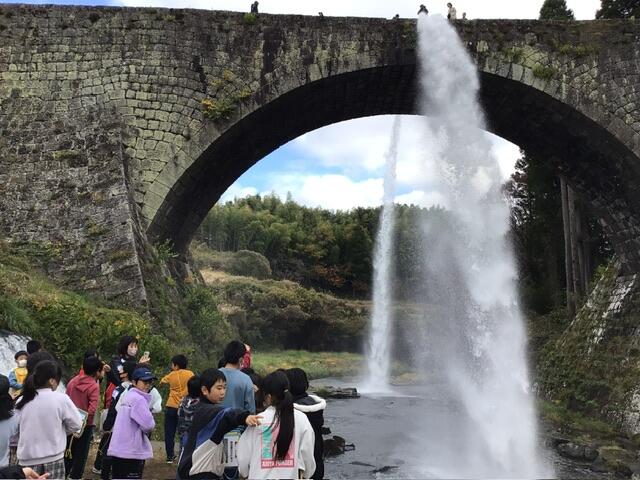 最終目的地である通潤橋を見学しました。迫力ある放水を見て、橋の上も渡りました。少々寒くはありましたが、天候に恵まれいい旅行となりました。