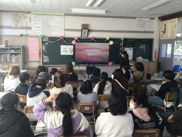 日曜日、クリーン作戦に引き続き4年生教室で二分の一成人式がありました。サンドアートをおうちの方と一緒に作り、学年委員さんが作成されたムービーをみんなでみて、子どもたち一人ずつ10年後の自分について発表しました。温かい雰囲気の中で楽しいひとときでした。学年委員のみなさん、準備ありがとうございました。