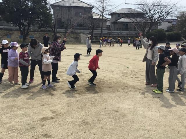 水曜日の桜っ子タイムに大なわ大会が行われました。各学年、体育の時間や昼休み等で練習して本番に臨みました。2分間で何回跳べるかということで、目標に向けてみんなで力を合わせました。天気もよく、笑顔で跳ぶ姿に元気をもらった次第です。