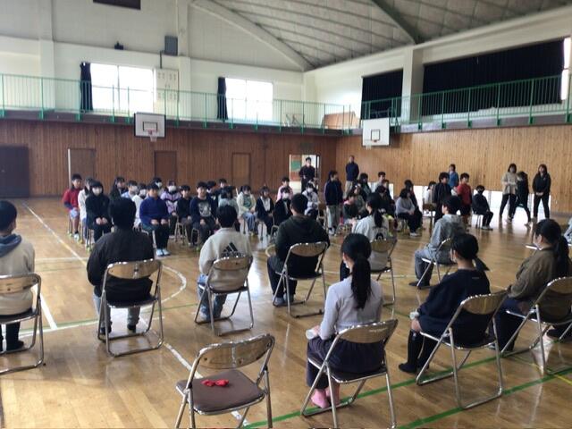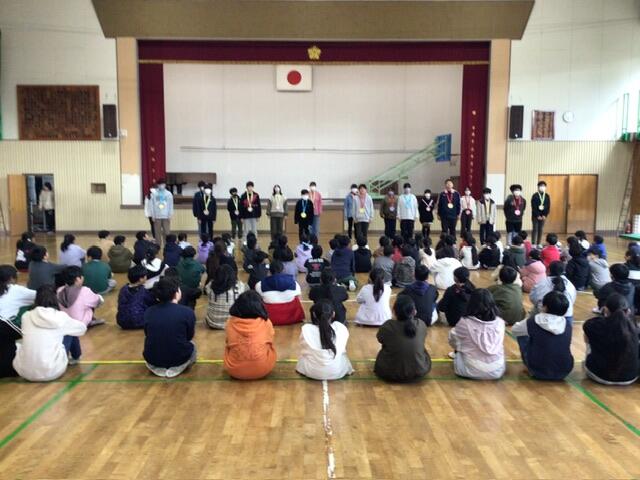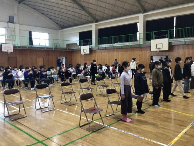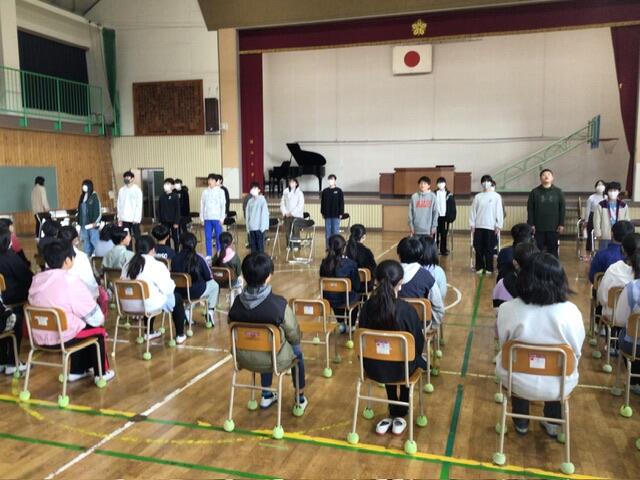 昨日から卒業式の練習が始まりました。午前中に卒業生、午後に在校生と分かれて練習しました。卒業生は、入場から退場までたくさんの動きを覚えなければいけません。何度も間違えながらも少しずつ全体で合わせて動けるようになりました。当日までにしっかりと練習しましょう。在校生は、呼びかけがメインになります。卒業生が安心して学校のことを任せて卒業できるようにがんばりましょう。