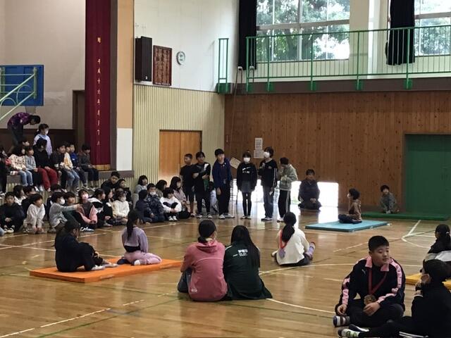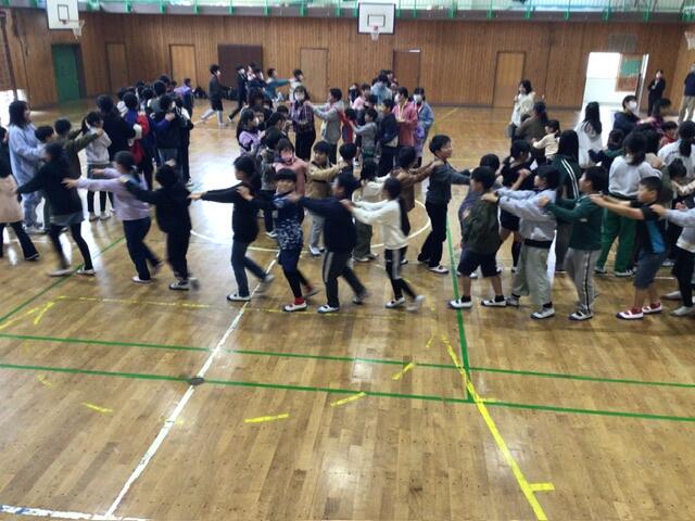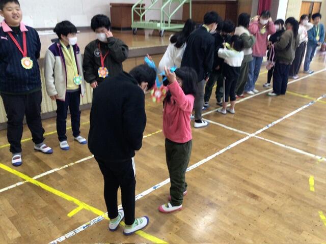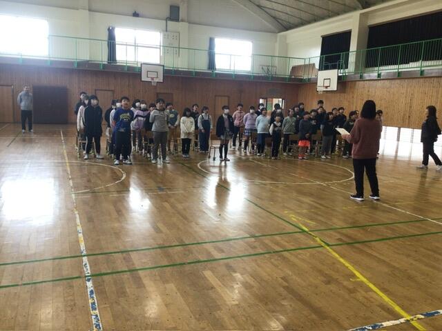 昨日、6年生を送る会をしました。最初に在校生から6年生へ向けてのメッセージと歌、メダルのプレゼントがありました。その後6年生からお礼のメッセージ歌の発表でした。続いて総務委員会主催のゲームとして、6年生クイズ、沈没ゲームで盛り上がりました。時間があったので、全校じゃんけん列車をして終わりました。とても楽しいひとときを過ごすことができました。その後、送別遠足へ行きましたが、その様子は次回お知らせします。