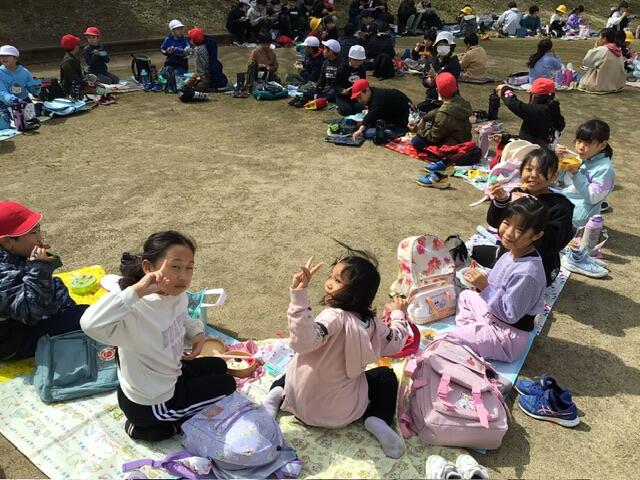 6年生を送る会に続いて送別遠足へ行きました。目的地は北五反田公園です。少し遠回りして春の風景を楽しみながら歩きました。1年生も長い距離をしっかり歩き、一年間の成長を感じさせてくれました。目的地に到着すると、子どもたちが楽しみにしていたお弁当タイムでした。歩いておなかがぺこぺこになった子どもたちは美味しそうに頬張っていました。自由遊びのあと、再び総務委員会による全校遊びをしました。6年生対在校生の鬼ごっこでした。さすがの6年生も、在校生の数に圧倒されていたようです。少々風が強かったですが、楽しい遠足になったようです。