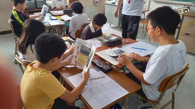4年生は社会の授業でした。グループごとに資料を読み取っていました。