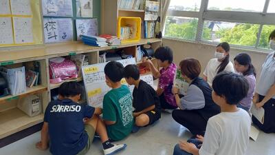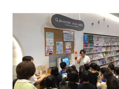 7月3日の午前中に、2・3年生合同で荒尾図書館に行きました。公共施設の場所やその働き、そこで働く人々の工夫を知るために、実際に見たり、事前調べで疑問に思ったことを質問したりしました。