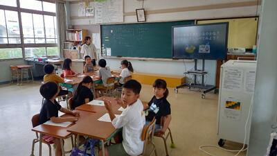 4校時には、先生のお話を聞いて、振り返りの時間をとりました。子供たちからは、「自分が将来なりたい仕事をするために、何のためにするのか、目的をしっかりもち、今から、しっかり努力をしていきたいと思いました。」「スマホばかりでなく、本をしっかり読んでいきたいです。体や栄養のこと、勉強をしっかり頑張っていきたいです。」など、自分が感じたこと、考えたことをしっかり考えることができました。