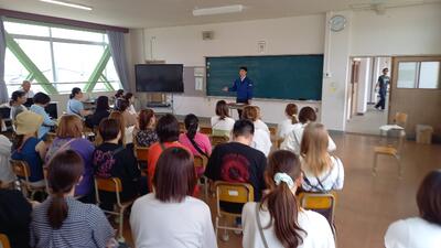 また、授業参観後のPTA講演会では、荒尾警察署生活安全課 北里さんを講師としてお招きし、県内や荒尾市内で起きているSNSのトラブルの例(場合によっては、触法事案になること)、家庭での使わせ方などについて講話をしていただきました。