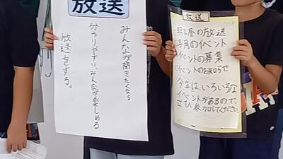 本日の昼活動の時間は体育館で児童集会を予定していましたが、あまりの暑さのため、Zoom配信で児童集会を実施しました。発表した委員会は放送委員会と生活安全委員会です。