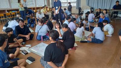 7月11日(金)の3校時に、地域の方と学校運営協議会の方とともに、合同防災熟議を行いました。この熟議は、9月13日に実施する防災実践の内容を検討するためのものです。