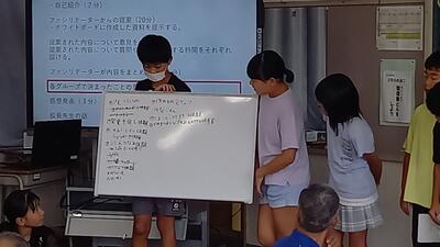 班で出た意見は、ホワイトボードにまとめて児童の代表者が発表します。