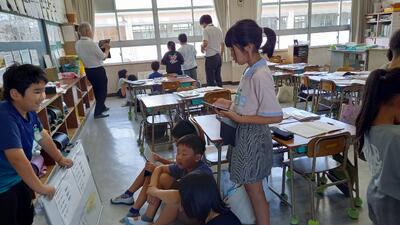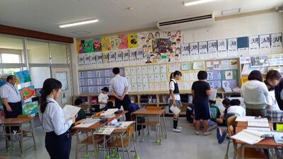 来校された皆様からは、「子供たちが落ちついて学習しており、表情がいきいきしていた」「子供たちがお互いに意見を出し合いながらホワイトボードを使ってまとめ、説明している姿が素晴らしかった」「温かい雰囲気で、みんなが安心して学んでいた。特別支援学級の雰囲気が温かく、安心できる環境で学んでた。」「校舎は古いが、掲示物が整理されており、美しかった」など、多くの励ましや賞賛の言葉をいただきました。今後も、子供たちが中心となって活躍できる学校を目指し、頑張っていきたいと思います。