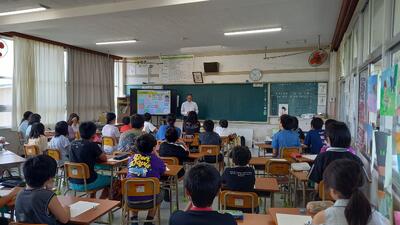 7月15日(火)の午前中に、荒尾市教育委員会にいる学校訪問が行われました。