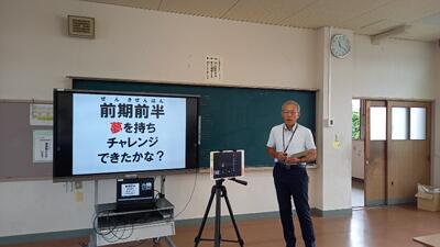 7月18日(金)4校時に夏休み前集会がありました。夏休み前集会も、暑さ対策のため、Zoomオンラインで音楽室から各教室に配信する形で実施しました。