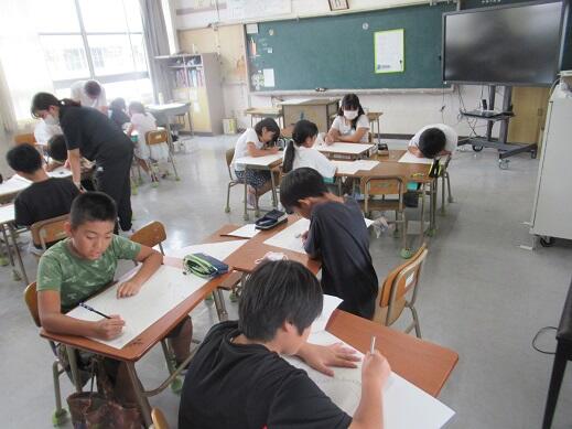 6年生は風景画に挑戦。細かいところまで丁寧に微妙に色を変えながら彩色しています。さすが6年生です。どんな作品に仕上がるか楽しみです!