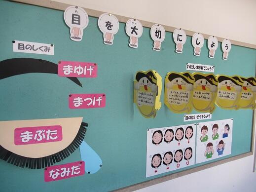 【保健室前は目の愛護デーに関するもの】 【食育コーナーは実りの秋の食べ物】