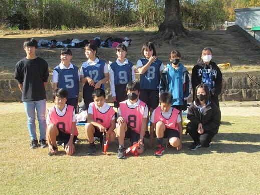 10日(土)に荒尾市小学生タグラグビー大会が開催されました。第3回を迎える今大会には30チームを超す参加があり、大いに盛り上がりました。本校からも男女1チームずつ6年生が参加しました。開会式では、本校児童が代表で選手宣誓を行い、その堂々とした態度に他校の校長先生方も感心しておられました。さて、試合の方ですが体育の時間や昼休みに髙尾先生と練習を積み重ねてはいたものの、あと一歩というところでした。しかし、子どもたちの最後まであきらめず粘り強く走り回る姿は、ワールドカップの日本代表と重なるものがあり、すがすがしい気持ちになりました。卒業前の思い出がまたひとつ増えたようです。