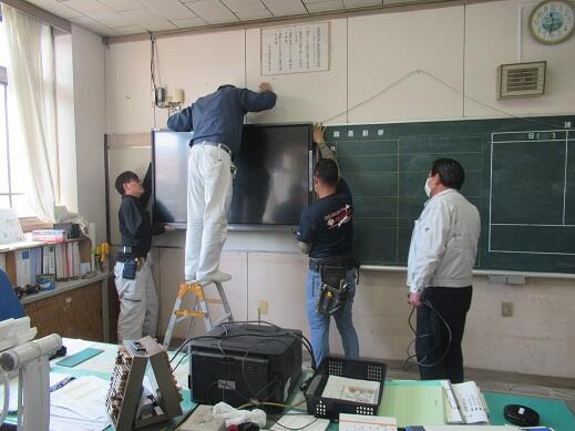 職員室にモニターを設置してもらいました。毎日の行事予定や職員の出張等を手書きやプリントアウトで表示していましたが、パソコンとつなぐことでその手間が省けます。また、職員室で研修する時に、資料を映し出すこともできます。効果的な活用方法をこれから探っていきます。