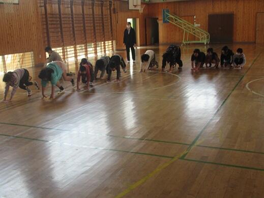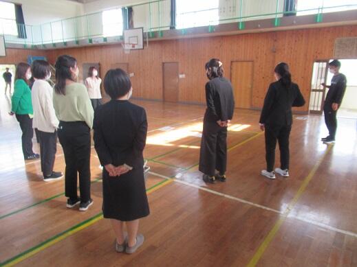 体育館で、引き渡し訓練の動きの確認も行いました。