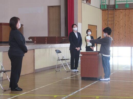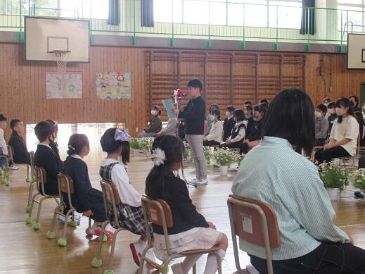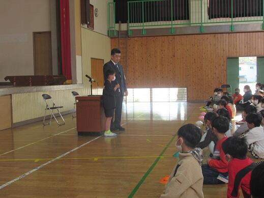 転入性の紹介の後は、就任式です。新しく来られた3名の先生方のお話を聞きました。児童代表が、立派に歓迎の言葉を述べてくれました。さすが6年生、頼りになります!